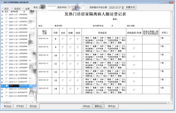 患者就诊完毕后,我院门诊部可使用“互联网+发热门诊随访“功能,随时调取我院发热门诊患者信息,并自动生成随访表格,进一步跟踪患者的现状。