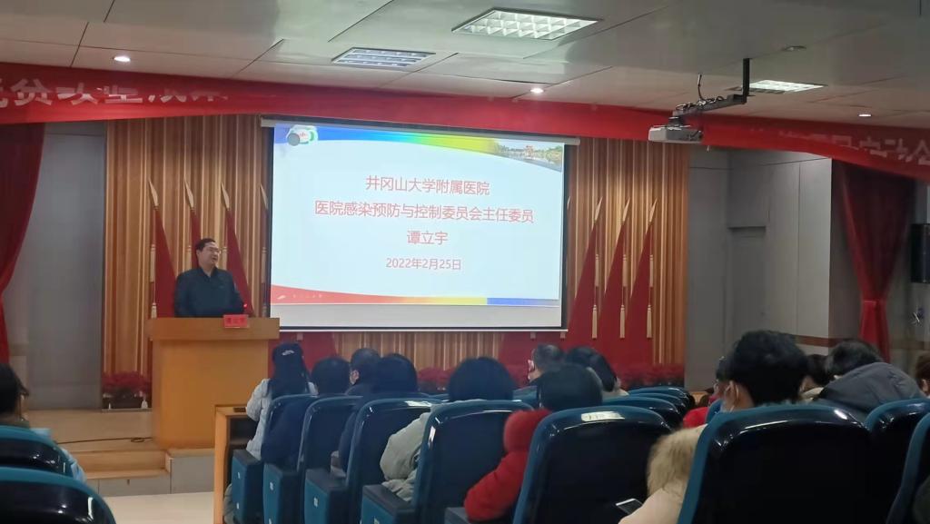 接着,常务副主任韦华璋总结了2021年的常态化疫情防控工作并结合当前国内外新冠疫情严峻形势对我院疫情防控工作做下一步部署。他指出,2021年度的感控工作有亮点,有启示,有成绩,但也有不足。当前,新冠疫情“外防输入,内防反弹”形势依然严峻,全院职工应提高思想认识和政治站位,要有责任心和主人翁思想,疫情防控不能有麻痹、松懈和侥幸心态,要切实落实好疫情防控具体措施,强化疫苗接种工作,统筹好疫情防控和医疗服务之间的关系。另外还须引导和做好舆论宣传,不造谣、不信谣、不传谣。
