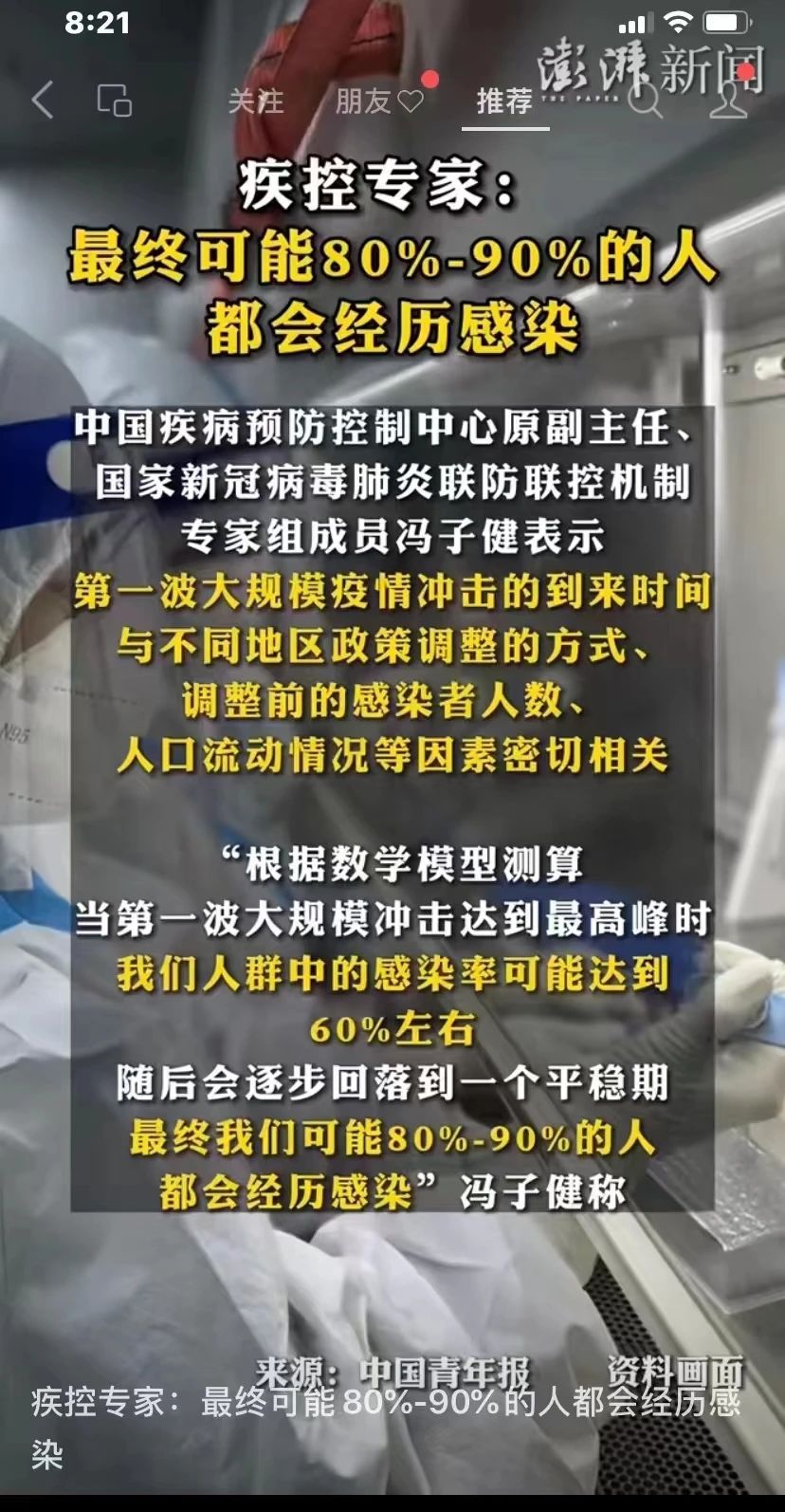 希望放开后,经过一轮阳性之后,趋于平稳,更快的回到2019年以前的状态。专家预测可能明年上半年。