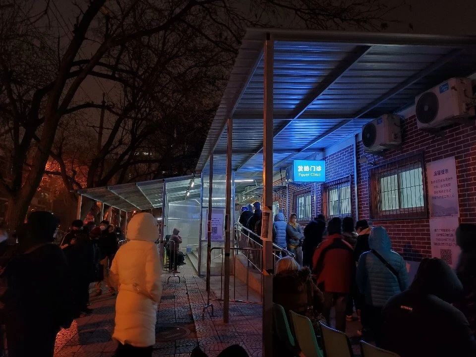 “新十条”发布后北京发热门诊排起长队。(图片来源:@paidaxi60257895)