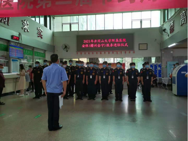 2021年5月31日下午15时,随着保卫科王忠和科长的一声“向右看齐、向前看”,井冈山大学附属医院2021年度安保进驻启动大会正式开始。